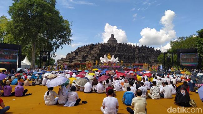 Seribuan umat Buddha memperingati detik-detik Tri Suci Waisak di pelataran Candi Borobudur, Kabupaten Magelang, hari ini. Wakil Menteri Agama Zainut Tauhid Sa'adi menyebut peringatan ini merupakan salah satu wujud keyakinan dan bakti umat Buddha seluruhnya kepada sakyamuni Buddha Gautama.