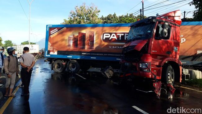 Kecelakaan tersebut melibatkan truk trailer pengangkut kontainer L 8014 UJ dan truk trailer boks rokok, AG 8842 AH.