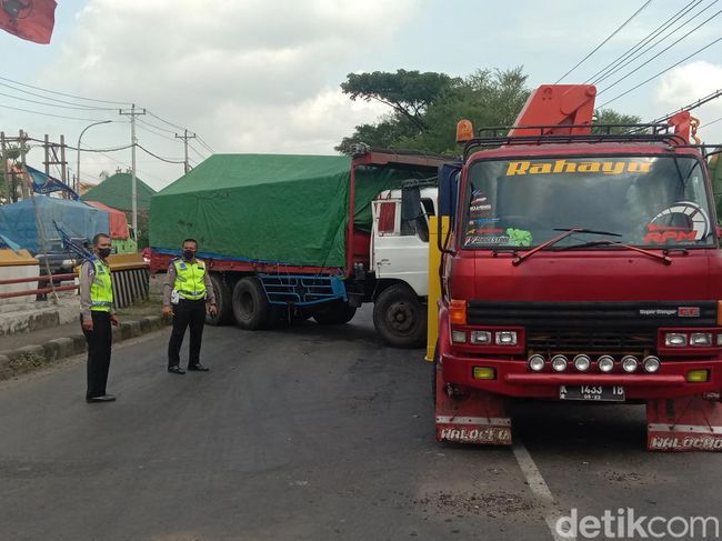 Tampak petugas kepolisian tengah melakukan evakuasi truk yang berpelat nomor G 1309 JA yang mengalami kecelakaan tunggal. Polisi juga terlihat tengah mengatur lalu lintas Pantura Kudus-Pati.