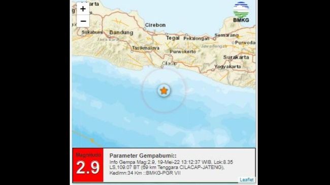 Kabupaten Cilacap, Jawa Tengah digoyang keempat kalinya hari ini. Kali ini gempa bumi berkekuatan magnitudo 2,9.