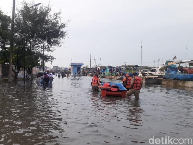 Banjir rob menggenangi kawasan Kelurahan Bandarharjo dan Tanjung Mas di kawasan Pelabuhan Tanjung Emas, Semarang Utara, Kota Semarang. Akibatnya, warga terjebak dan tak bisa keluar dari rumah.