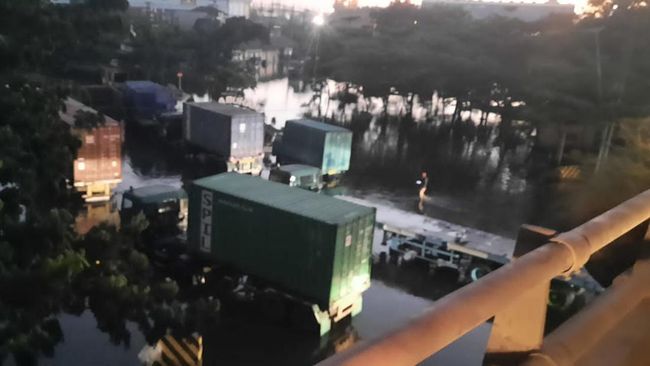Mengutip laporan BPBD pukul 05.30 WIB, banjir rob masih menggenangi Pelabuhan Tanjung Emas Semarang namun tidak separah kemarin. Tampak dari foto, masih ada beberapa motor karyawan yang ditinggal di sana.