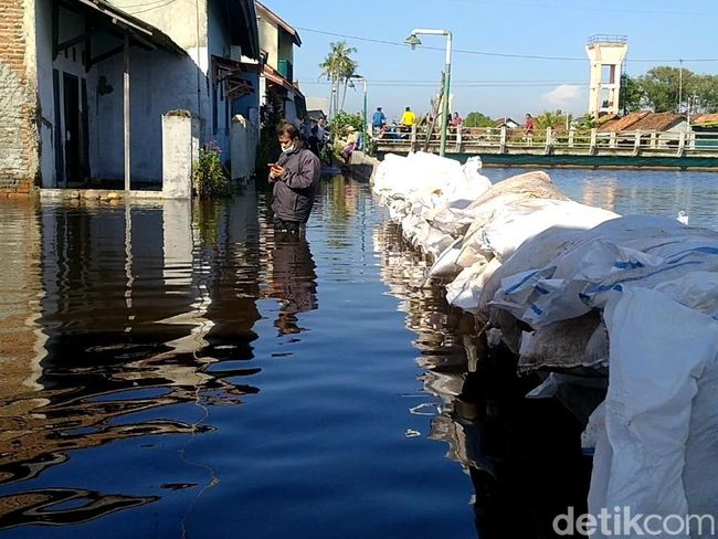 "Kemarin sore tanggul jebol sedikit demi sedikit. Saat ini yang jebol sekitar 100 meter. Semalam sudah dibuat tanggul darurat dengan karung pasir oleh TNI. Tapi sepanjang 100 meter ini belum semuanya dibuat tanggul darurat. Sehingga air masuk ke permukiman lagi," ujar Slamet.