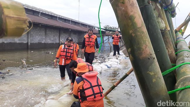 Petugas gabungan masih terus mengebut proses perbaikan tanggul jebol yang jadi salah satu penyebab banjir rob ekstrem di pesisir Semarang. Pekerja lapangan bahkan harus berjam-jam menceburkan diri di laut demi membuat tanggul darurat dari tumpukan karung berisi pasir.