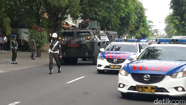 Selain kendaraan roda empat, kendaraan patwal roda dua juga terlihat mengikuti simulasi. Kemudian terlihat pula kendaraan rantis anoa.