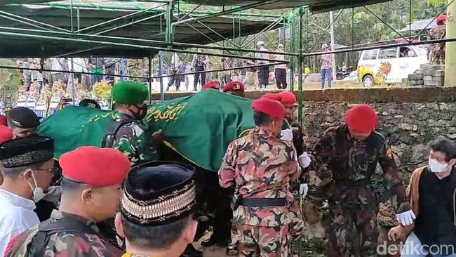 Prosesi pemakaman berlangsung cepat. Ada ratusan pelayat yang berada di lokasi.