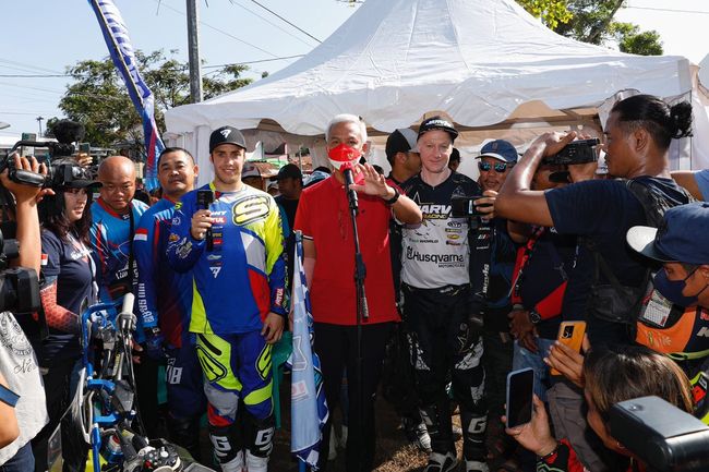 Gubernur Jawa Tengah Ganjar Pranowo melepas pembalap motor trail dalam acara Penobatan Raja Tanjakan dan Enduro Race di Cilacap, Jawa Tengah. Acara ini diikuti tak hanya oleh pembalap motor trail se-Indonesia, tapi juga juara dunia motor trail seperti Mario Roman dan Graham Jarvis.