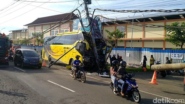 "Semula KBM bus melaju dari arah timur ke barat dengan kecepatan sekitar 60 km/jam. Sesampainya di TKP bus hilang kendali dan menabrak dua tiang listrik, dan terhenti di tiang kedua. Pengemudi diduga mengantuk," kata Munawwarah.