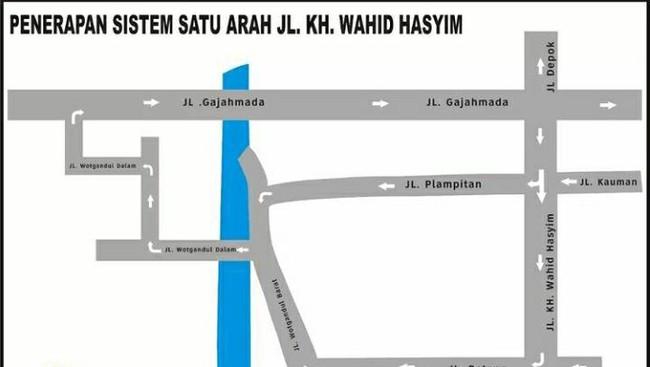 - Jalan KH Wahid Hasyim nantinya nantinya akan satu arah sejak Simpang Gajah Mada menuju ke arah timur atau ke arah gerbang pecinan atau Simpang Jalan Beteng.
