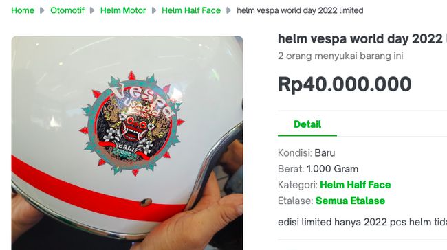 "Penerimaan positif terhadap Genuine Vespa Helmet edisi khusus Vespa World Days 2022 di Bali, Indonesia yang diproduksi terbatas sebanyak 2022 unit, tentunya menjadi bukti kuat akan antusiasme para fans Vespa yang sangat tinggi," ujar Ayu dalam keterangannya kepada detikcom, Kamis (16/6/2022).