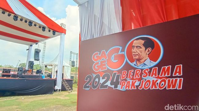 Pantauan di Stadion Kamal Junaidi, Kabupaten Jepara, Jawa Tengah, Sabtu (18/6), tampak sejumlah petugas menyiapkan acara bertajuk Gagego 2024 Bersama Pak Jokowi. Panggung mewah pun sudah berdiri di tengah stadion tersebut.