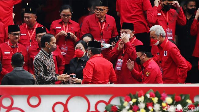 Hadir juga di atas panggung Ketua DPP PDIP Puan Maharani dan Prananda Prabowo. Mereka mendampingi Megawati, yang berada di samping Jokowi.