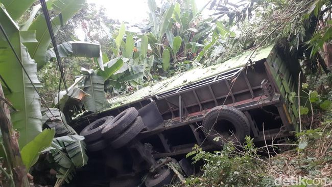 "Jadi kronologinya kendaraan truk boks dari atas diduga mengalami rem blong kemudian diarahkan ke kiri menabrak tiang listrik, langsung terjun ke jurang," kata Riyadi.