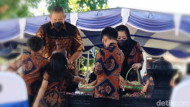 SBY beserta rombongan tiba di makam yang terletak di Desa Pangen Juru Tengah, Kecamatan Purworejo, Kabupaten Purworejo, itu pada Selasa (28/6/2022) siang. Ketua Majelis Tinggi Partai Demokrat itu tampak didampingi oleh sang menantu, Aliya Rajasa bersama tiga cucunya.
