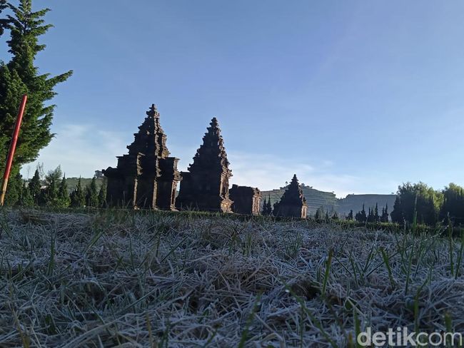 "Pagi ini embun di Dieng kembali membeku. Di antaranya terlihat di Candi Arjuna, Dharmasala, dan di lapangan di sebelah candi," kata Utami saat dihubungi detikJateng, Kamis (30/6/2022).
