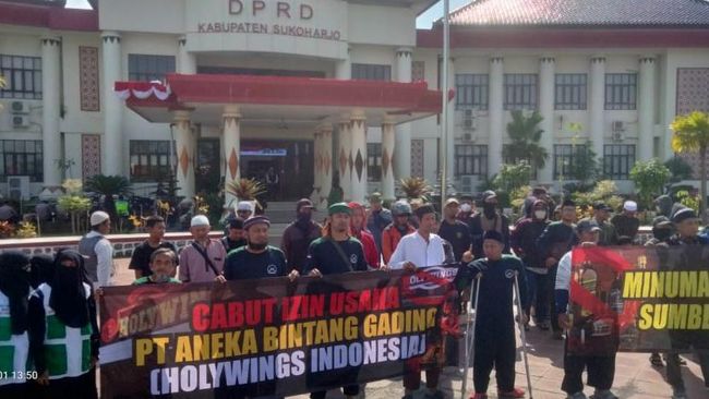 Massa di Kabupaten Sukoharjo, Jawa Tengah, demo terkait pembangunan Holywings di Solo Baru. Massa menggeruduk gedung DPRD Sukoharjo.
