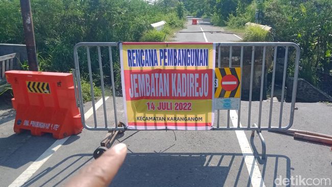 Pantauan detikJateng di lokasi, satu spanduk pengumuman dipasang di simpang tiga wilayah kota Kecamatan Karanganom. Satu lagi dipasang di besi pembatas titik lokasi jembatan ambrol.
