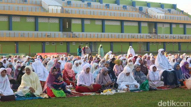 Pantauan detikJateng di lokasi, Sabtu (9/7/2022), pukul 06.00 WIB warga mulai datang di Stadion Wergu Wetan Kudus. Suara takbir terdengar di dalam stadion kebanggan warga Kudus tersebut.