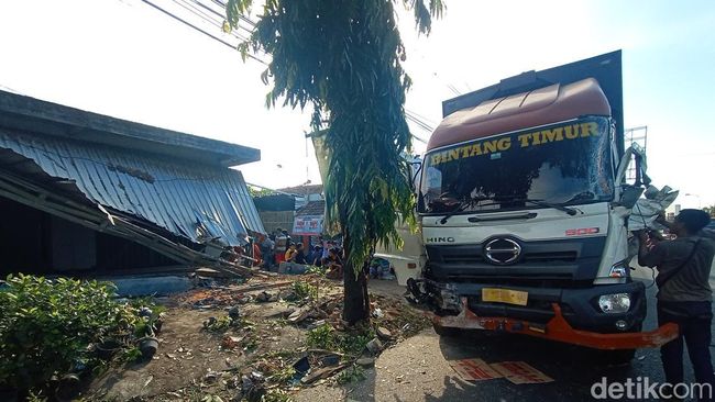 "Jam empat sebelum subuh, terdengar suara dwarr. Ternyata ada truk tronton nabrak pohon sama atap depan rumah warga milik Pak Maksum," kata Rifai kepada detikJateng di lokasi pagi ini.
