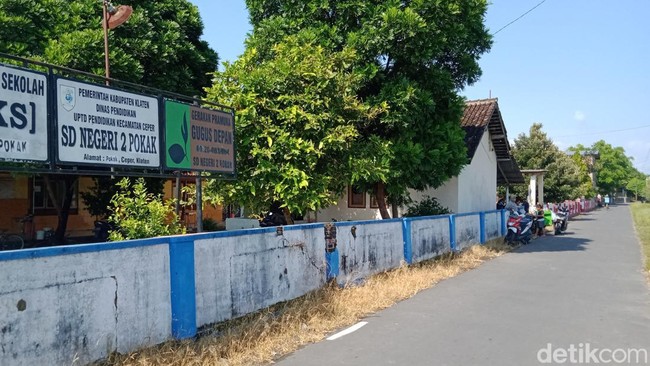 SDN 1 dan 2 Pokak, Desa Pokak, Kecamatan Ceper, Klaten, Jawa Tengah berdiri berdampingan dan temboknya gandeng. Namun saat PPDB, kedua SDN itu adem ayem di tengah kesulitan mendapatkan siswa yang dialami SDN lain.