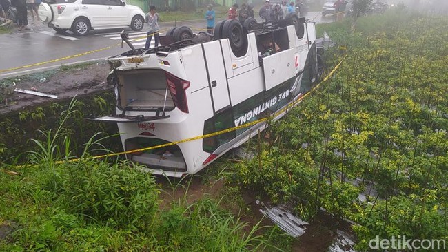 Diberitakan sebelumnya, bus rombongan pendaki Gunung Merbabu kecelakaan tunggal di Desa Ketep, Kecamatan Sawangan, Kabupaten Magelang, Sabtu (16/7). Bus terguling di lahan pertanian setelah diduga tidak kuat saat melewati jalan tanjakan.