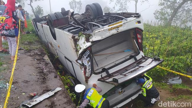 Sebagaimana diberitakan sebelumnya, bus bernopol DK-7590-AK yang membawa rombongan pendaki Gunung Merbabu mengalami kecelakaan di wilayah Desa Ketep, Kecamatan Sawangan, Kabupaten Magelang, Sabtu (16/7). Diduga bus tidak kuat saat melewati tanjakan sehingga mundur melewati bahu jalan hingga terbalik.