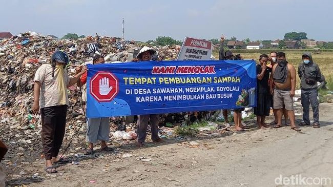 Protes itu dilakukan warga pada Jumat (15/7). Para warga membentang spanduk memprotes keberadaan TPS tersebut. Spanduk itu antara lain bertuliskan, "Kami menolak tempat pembuangan sampah di Desa Sawahan, Ngemplak, Boyolali karena menimbulkan bau busuk."