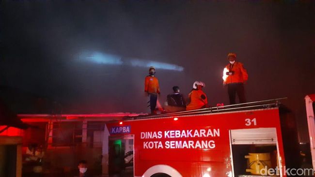 Pantauan detikJateng di lokasi, Kamis (21/7/2022) pukul 23.00 WIB, terlihat petugas masih berusaha memadamkan api.