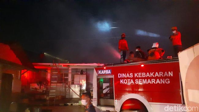 Pantauan detikJateng di lokasi, Kamis (21/7/2022) pukul 23.00 WIB, terlihat petugas masih berusaha memadamkan api.