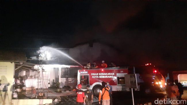 Pantauan detikJateng di lokasi, pukul 23.00 WIB, terlihat petugas masih berusaha memadamkan api.
