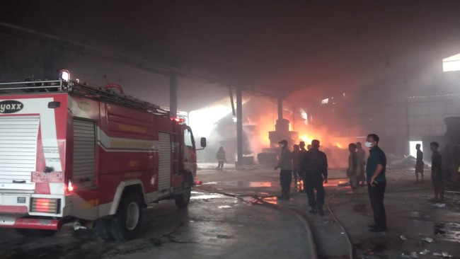 "Kebakaran sekira pukul 12.20 WIB, dapat dimungkinkan kebakaran tersebut dipicu dari percikan api las saat pekerja las bekerja di sebelah tumpukan fet plastik," kata Kapolsek Somagede AKP Hartoyo, Senin (25/7/2022).