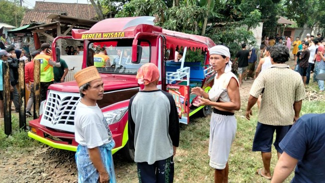 Salah satu warga bernama Wisnu mengatakan kejadian di kampung Toplas di pintu rel kereta pukul 11.00 WIB. Odong-odong membawa anak-anak, termasuk warga.
