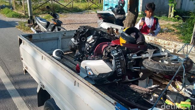 Sementara mobil Brio putih nomor polisi AD 8460 LV rusak di bodi sebelah kiri dan tengah. Sedangkan motor Scoopy warna merah nomor polisi AD 5271 QD ringsek tak berbentuk.