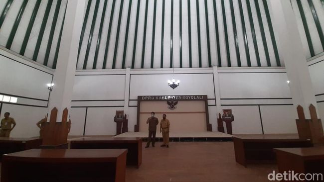 "Pendopo Ageng ini sementara akan kita gunakan dulu sebagai ruang rapat paripurna Dewan. Mulai 2 Agustus 2022 kami tempati ruang rapat paripurna sementara," kata Ketua DPRD Boyolali, Marsono, kepada para wartawan disela-sela mengecek pengerjaan penutupan Pendopo Ageng, Selasa (26/7/2022).
