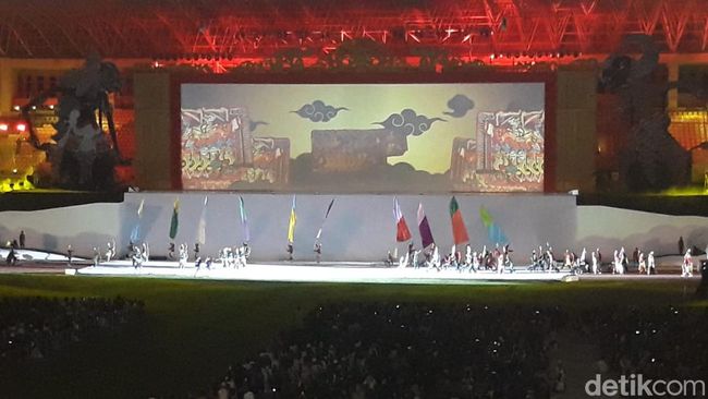 Setelahnya, ada atraksi dari sejumlah difabel yang muncul menggunakan kursi roda. Baru kemudian satu per satu perwakilan kontingen negara peserta ASEAN Para Games berjalan ke tengah stadion.
