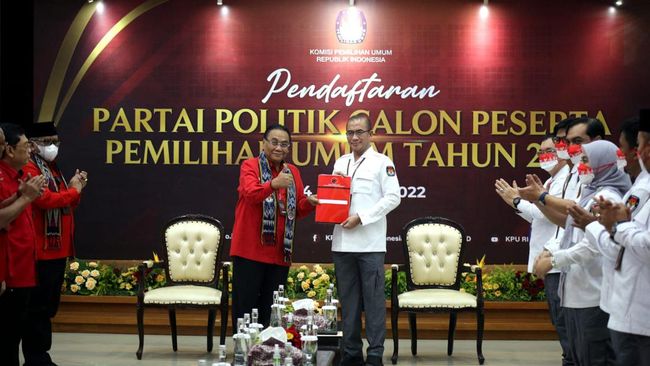 PDI Perjuangan mendaftar ke KPU RI sebagai peserta Pemilu 2024. Partai pemenang Pemilu 2014 dan 2019 tersebut ingin kemenangan hattrick atau tiga kali berturut-turut. PDIP juga mengungkap makna angka 477.777 kader yang didaftarkan di KPU hari ini.