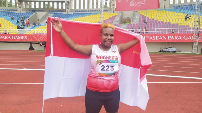 Maria Willi tidak bisa membendung air matanya setelah mempersembahkan emas untuk Indonesia di nomor javelin throw women (lempar lembing) klasifikasi F40/F46 ASEAN Para Games XI 2022 di Solo. Di sela kegembiraannya, ia teringat sang ayah yang telah pergi.