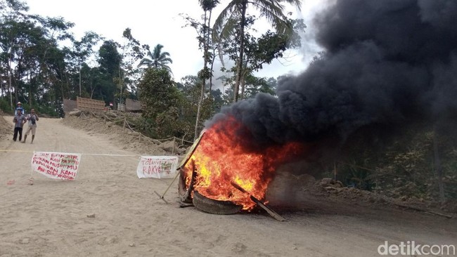 Aksi massa yang tergabung dalam Master Bend atau Masyarakat Terdampak Bendungan Bener berujung ricuh. Tampak massa membakar ban bekas dan memaksa memasuki area proyek, Kecamatan Bener, Kabupaten Purworejo.