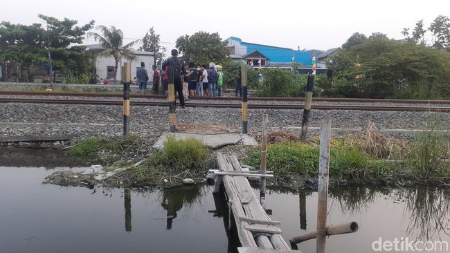 Lokasi pemukiman dengan rel kereta api sebenarnya dibatasi dengan kali yang cukup lebar. Di dekat rumah korban, ada jembatan yang hancur namun diberi bambu agar tetap bisa dilintasi.