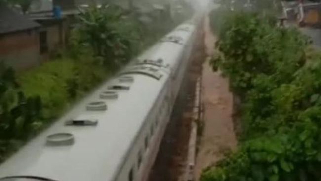 "Saat ini lokasi masih hujan deras, dan Tim KAI masih memantau serta melakukan pengamanan di lokasi," imbuhnya.