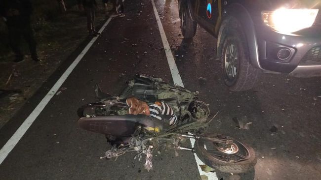 Dari arah yang berlawanan melaju sepeda motor yang dikendarai korban. Karena jarak yang sudah terlalu dekat, kecelakaan tidak bisa terhindar.