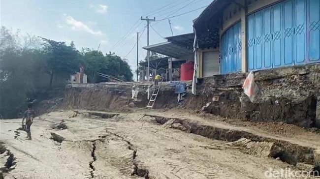 "Itu terjadi sejak kemarin. Jalan baru dibangun amblas sedalam satu meter. Kondisinya juga rusak parah, banyak retakan menganga di sana sini," ujar Karyono, Senin (22/8/2022).