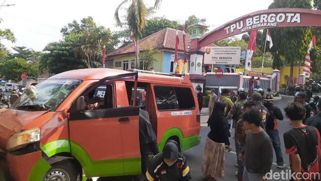 Kecelakaan itu terjadi sekitar pukul 14.30 WIB, tepatnya di depan gapura TPU Bergota. Pantauan detikJateng, Senin (22/8) sekitar pukul 15.30 WIB, terlihat angkot masih berada di depan pembatas jalan dengan kondisi ringsek di bagian depan.
