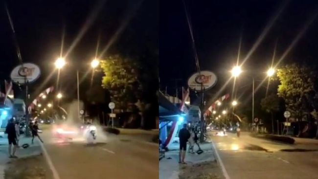 Video pembalap liar disiram air oleh warga hingga terjatuh viral di media sosial Facebook. Peristiwa itu diketahui terjadi di Kabupaten Grobogan, Jawa Tengah.