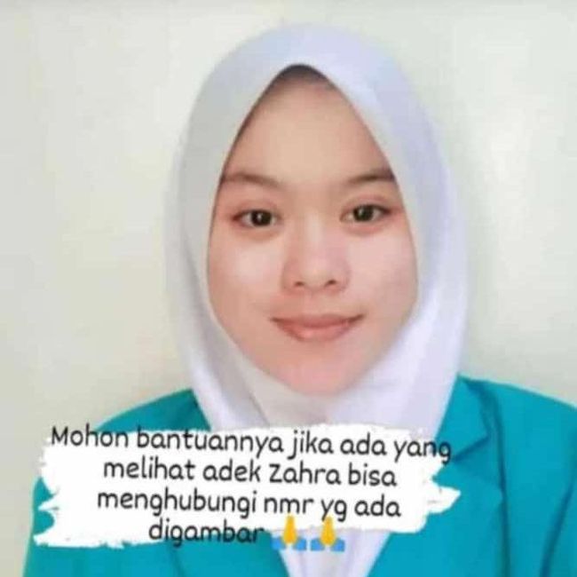 Sebelumnya diberitakan, Zahra (17) dilaporkan hilang sejak Senin (29/8) pagi dan hingga kini belum ditemukan. Ayah Zahra, Hisbulah Taufik, mengatakan Zahra sejak beberapa hari sebelumnya melakukan kegiatan seperti biasa. Bahkan mereka masih sering berkegiatan bersama sekeluarga.