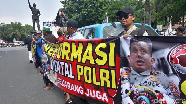 Puluhan orang menggelar aksi unjuk rasa terkait kasus pembunuhan Brigadir Nopriansyah Yoshua Hutabarat atau Brigadir J oleh Irjen Ferdy Sambo. Massa menyampaikan beberapa tuntutan, antara lain agar Ferdy Sambo dihukum mati hingga mendesak dilakukan reformasi di tubuh Polri.