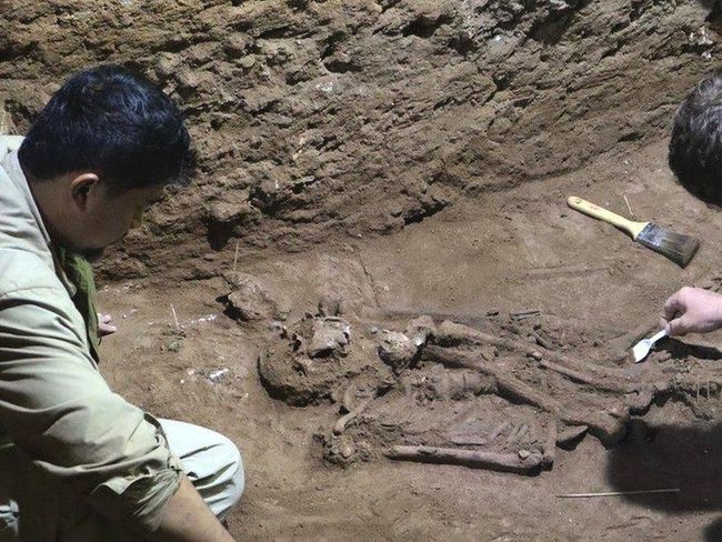 Para peneliti memeriksa temuan kerangka seorang pemuda berusia 31.000 tahun di Gua Liang Tebo, Kalimantan. Dari hasil penelitian kerangka di gua yang menyimpan lukisan purba paling awal di dunia itu, dilansir detikNews yang mengutip BBC Indonesia, Dr Melandri Vlok mengatakan kaki kiri kerangka itu 'sangat jelas' diamputasi.