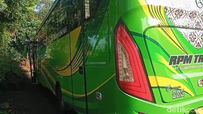 Bus pariwisata yang membawa rombongan dari Probolinggo menuju Dieng mengalami rusak bagian depan. Kaca bus depan pecah dan bumper penyok. Bagian belakang bus terlihat masih utuh.