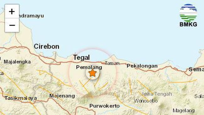 Pusat gempa berada di koordinat 7.00 Lintang Selatan (LS), 109.27 Bujur Timur (BT). Berjarak 16 kilometer barat daya Pemalang.