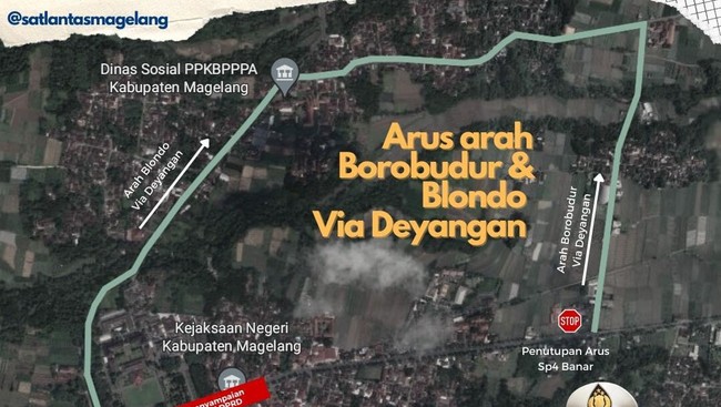 Dia menjelaskan arus lalu lintas ke arah Borobudur dari Blondo diarahkan melalui Simpang Banar-Deyangan-Tugu Tani-An Nur/Sigug. Kemudian, sebaliknya arus lalu lintas arah Blondo dari Borobudur diarahkan melalui Simpang Tugu Tani-Deyangan-Simpang Banar.